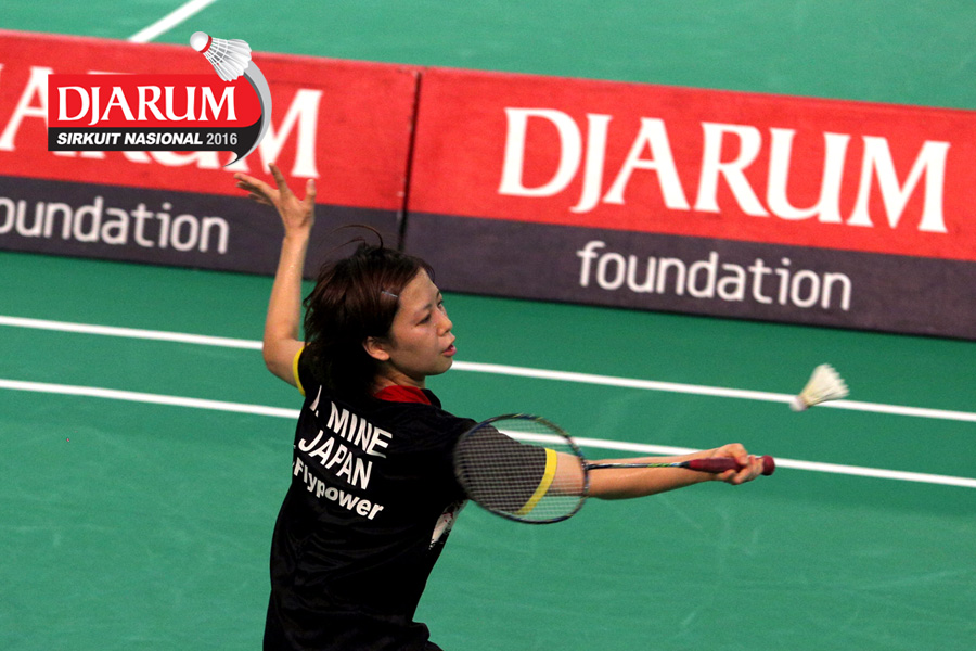 Ikumi Mine (Gifu Jepang) bersalaman dengan Ana Rovita (Pertamina Fastron) usai bertanding