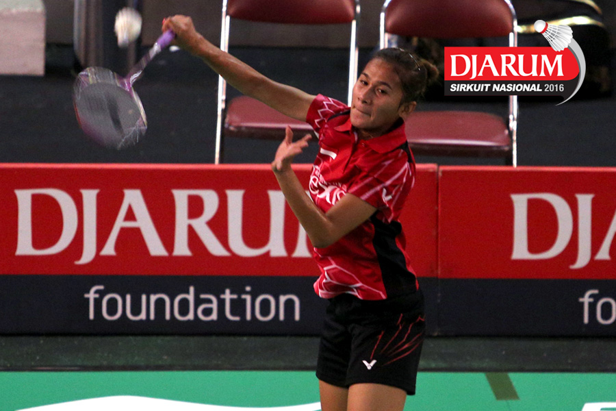 Febby Angguni (Tjakrindo Masters) mengembalikan shuttlecock