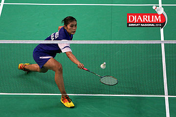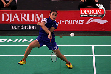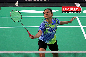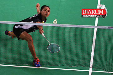 Putri Ayu (Exist) mengembalikan shuttlecock