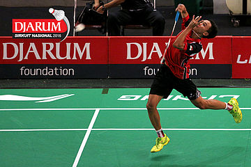 Ramadhani M. Zulkifli (Djarum Kudus) melepaskan serangan