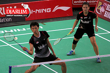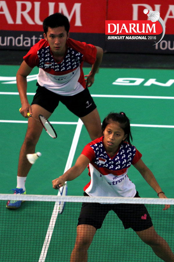 Yohanes Rendy/Dian Fitriani (Pertamina Fastron) menyambut serve