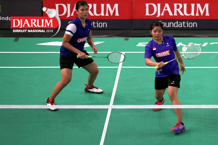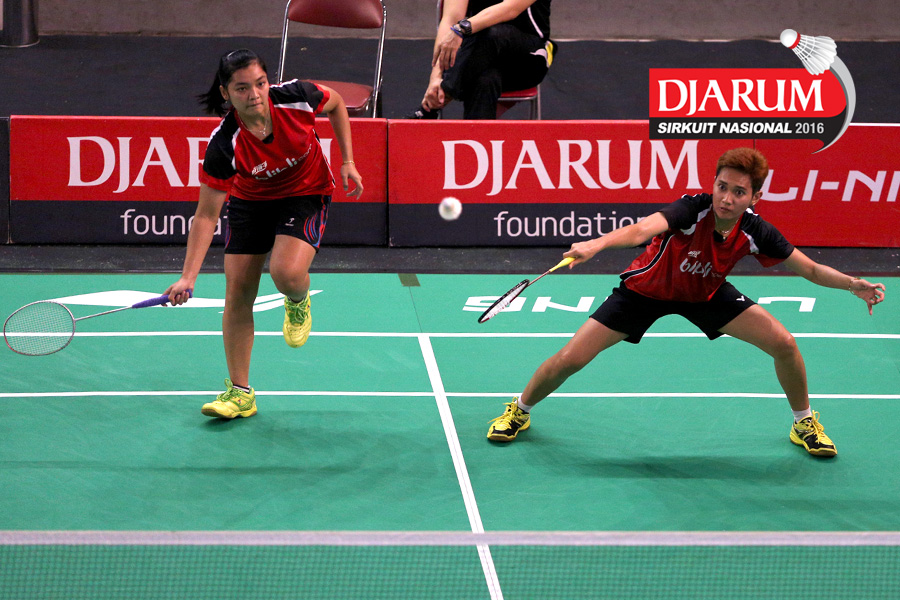 Ririn Amelia/Ristya Ayu (Djarum Kudus) menghadang serangan
