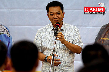 Abdullah (Ketua Pengprov PBSI Lampung) saat memberikan sambutan di acara Welcome Dinner