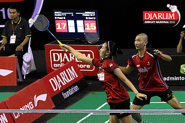Haffiz Nur Adila/Mia Dian (Djarum Kudus) mengembalikan shuttlecock