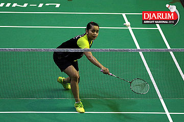 Ni Made Pranita (Batur) mengembalikan shuttlecock