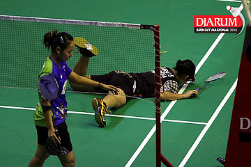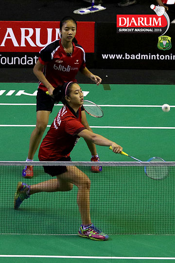 Febby Valencia/Metya Inayah (Djarum Kudus) mengembalikan shuttlecock