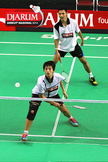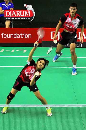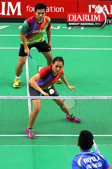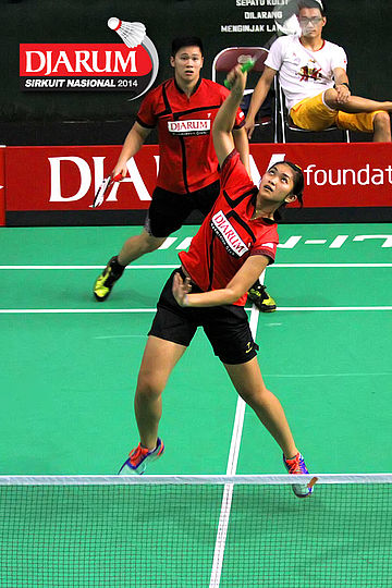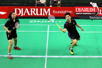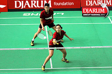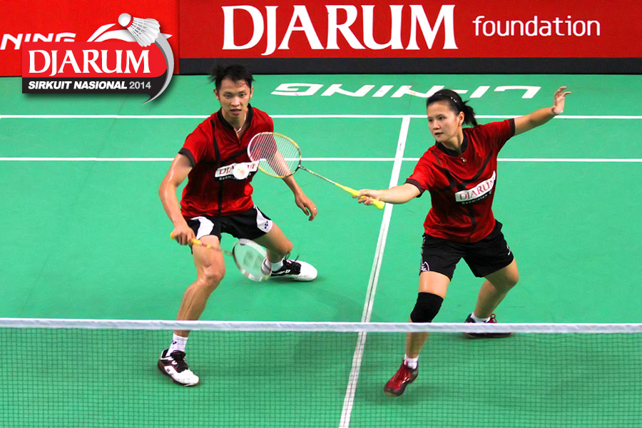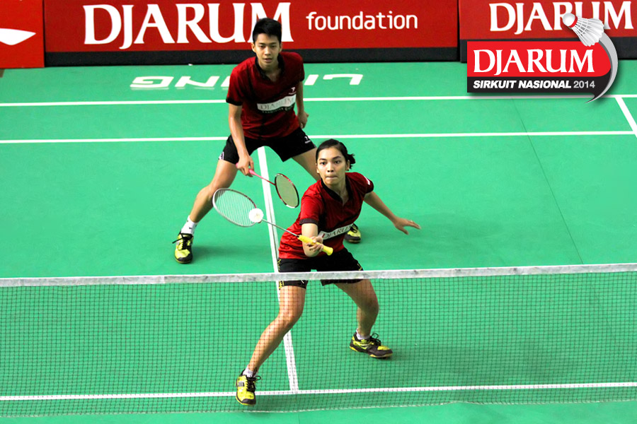Hantoro/Deariska Putri (PB Djarum) berhasil menghadang pengembalian dari pasangan Ridho Akbar/Imma Mutia (Halim/Mutiara Bandung)