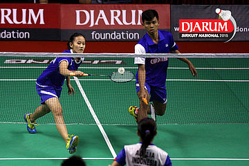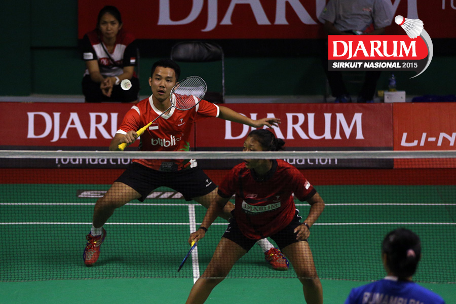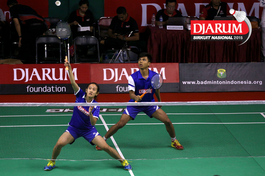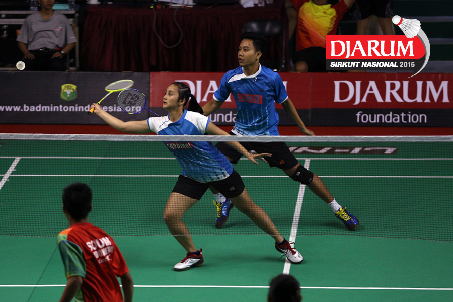 Galang Decky/Cynthia Shara (Djarum Kudus) menghadang serangan.