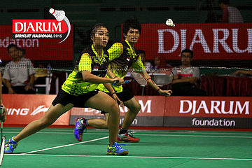 Harum Dinar/Felicia Parmenas (Djarum Kudus) menghadang serangan.