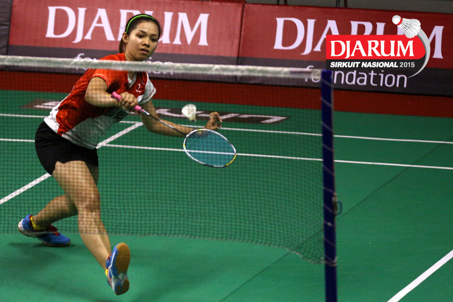 Febby Angguni (Tjakrindo Masters) mengembalikan shuttlecock.