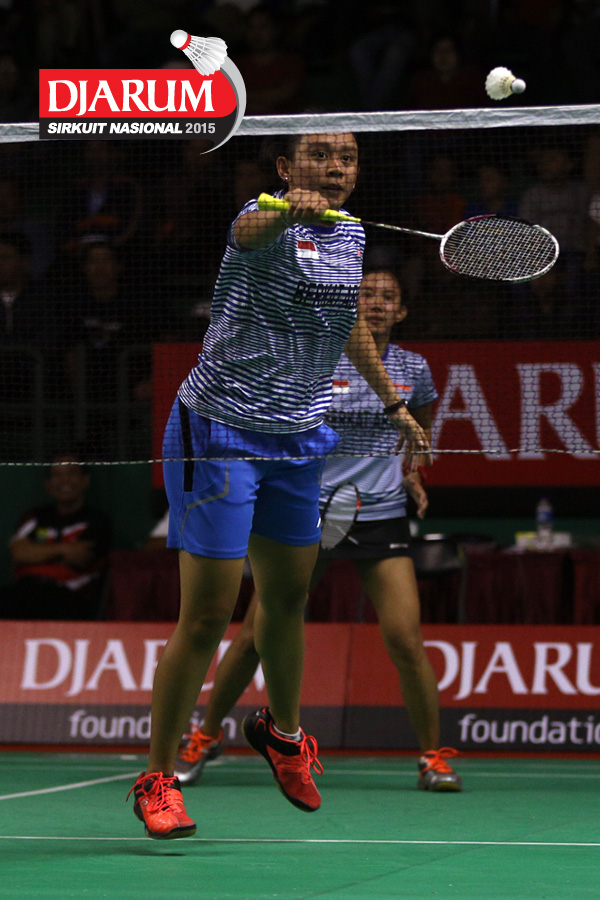 Aldira Rizky/Lisa Ayu (Djarum Kudus) bersiap menyambut pengembalian.