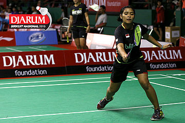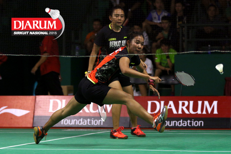 Devi Tika/Keshya Nurvita (Berkat Abadi) menyambut shuttlecock.