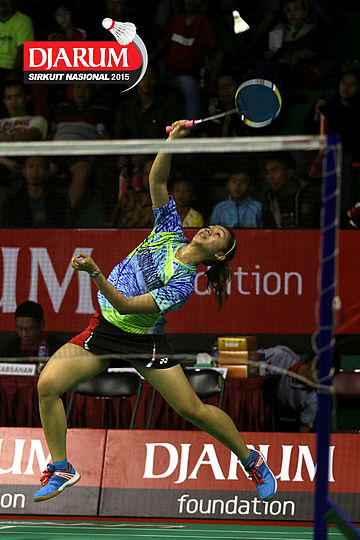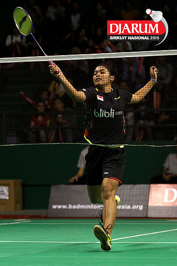 Gregoria Mariska (Pelatnas) menyambar pengembalian tanggung.