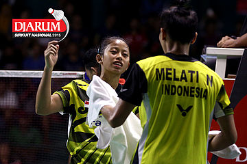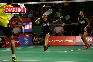 Dian Fitriani/Nadya Melati (Pertamina Fastron) saling berkoordinasi.