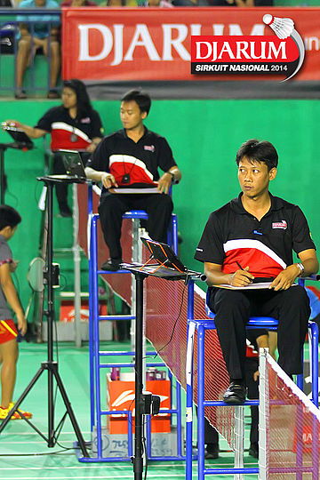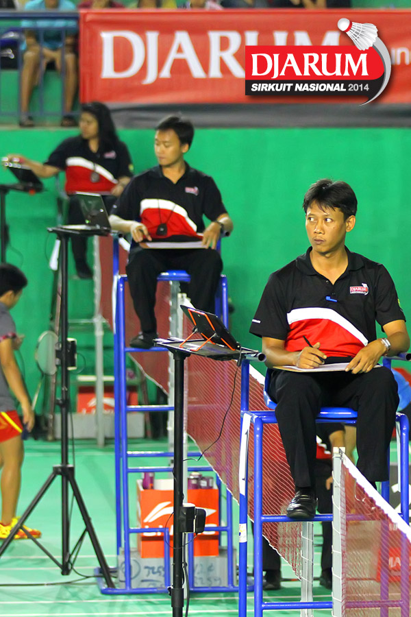 Sejumlah wasit saat memimpin jalannya pertandingan Djarum SIrkuit Nasional Li-Ning Jabar Open 2014 di Sport Hall UPI, Bandung