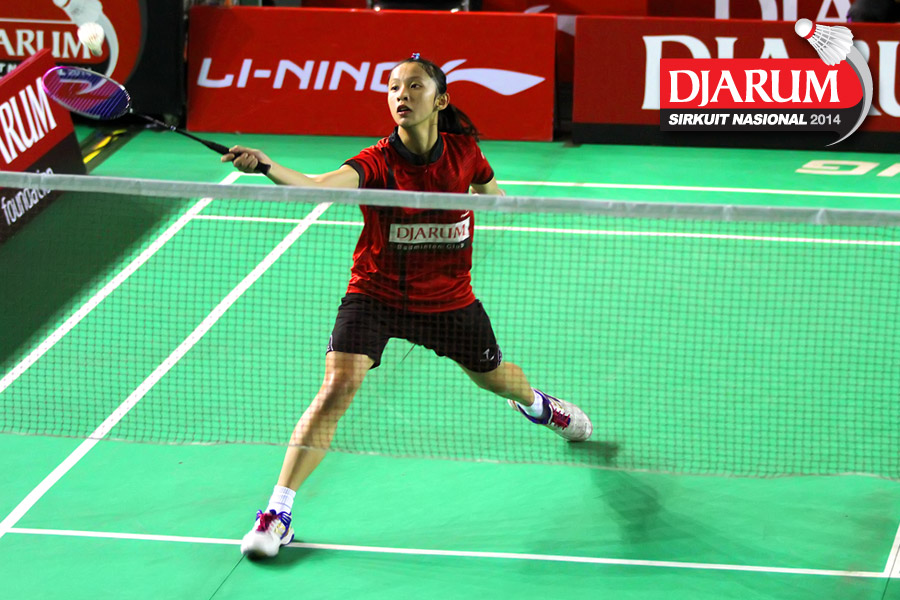 Karen Darmawan (PB Djarum) berhasil menghadang serangan yang dilepaskan Trifena Selaindoong (PPLP Sulut)