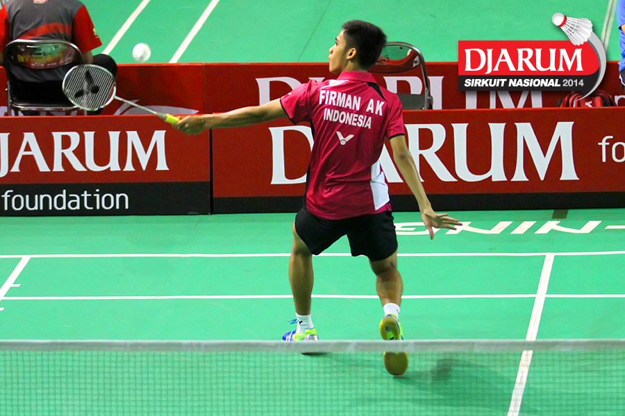 Firman Abdul Kholik (Pelatnas) melepaskan backhand ke arah Selmi Salam (ABC Bandung)