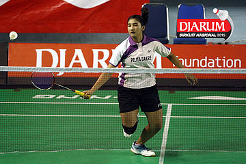 Jauza Fadhila (Pelita Bakrie) berusaha menggapai pengembalian dari Erlina Kurniati (Jaya Raya).