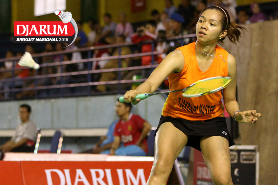 Febby Angguni (Tjakrindo Masters) bersiap menyambut pengembalian dari Asifa Nur Farisma (Semen Gresik).