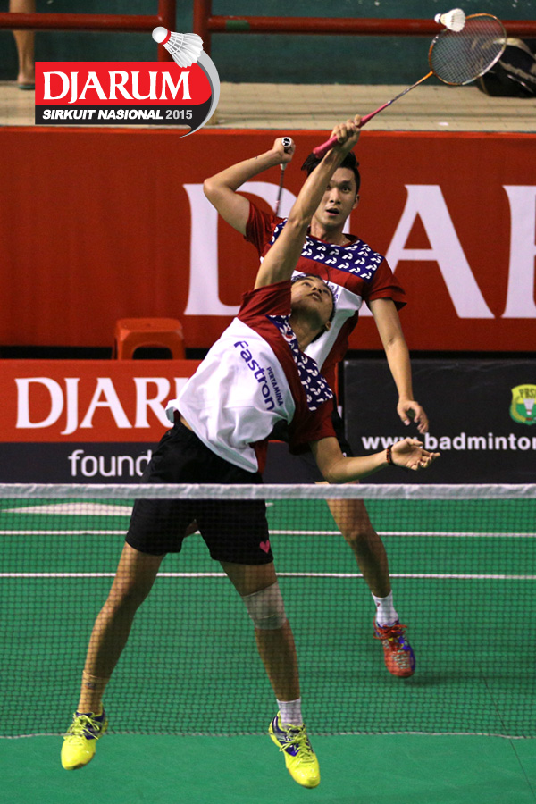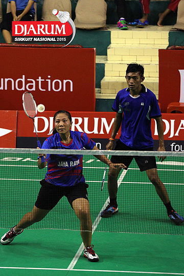 Ridho Akbar/Ery Octaviani (Halim/Jaya Raya) melepaskan serangan