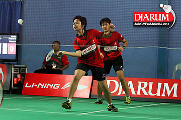 Karina Ria/Wulan Cahya (PB Djarum) bersiap menyambut pengembalian dari Ni Made Pranita/Sarah Christin (Pelatprov Bali/Pelatprov DKI Jakarta).