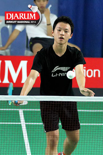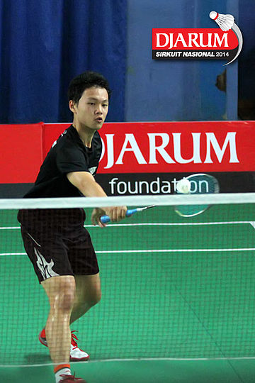 Antonius Chang (Banda Baru Batam) melepaskan serve.