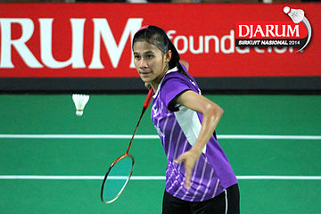 Yeni Asmarani (PB Djarum) saat menunggu lawan tandingnya.