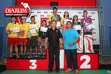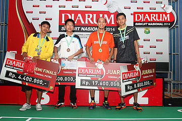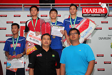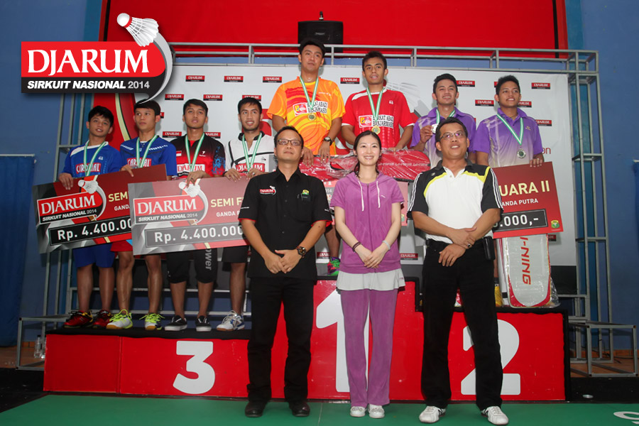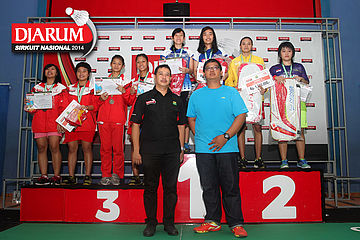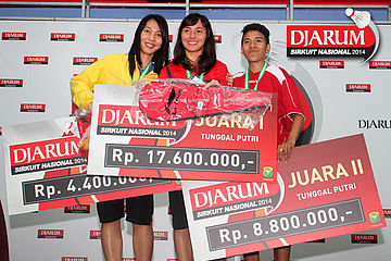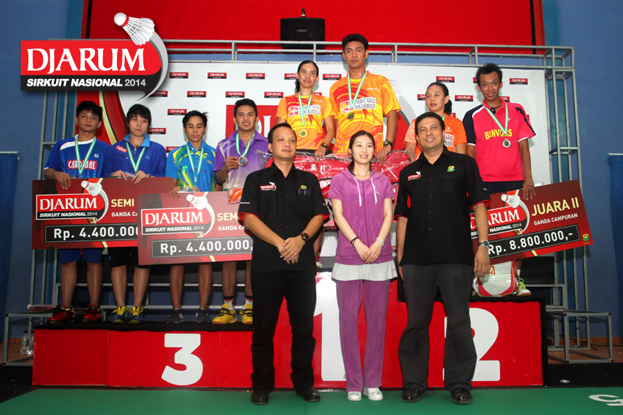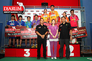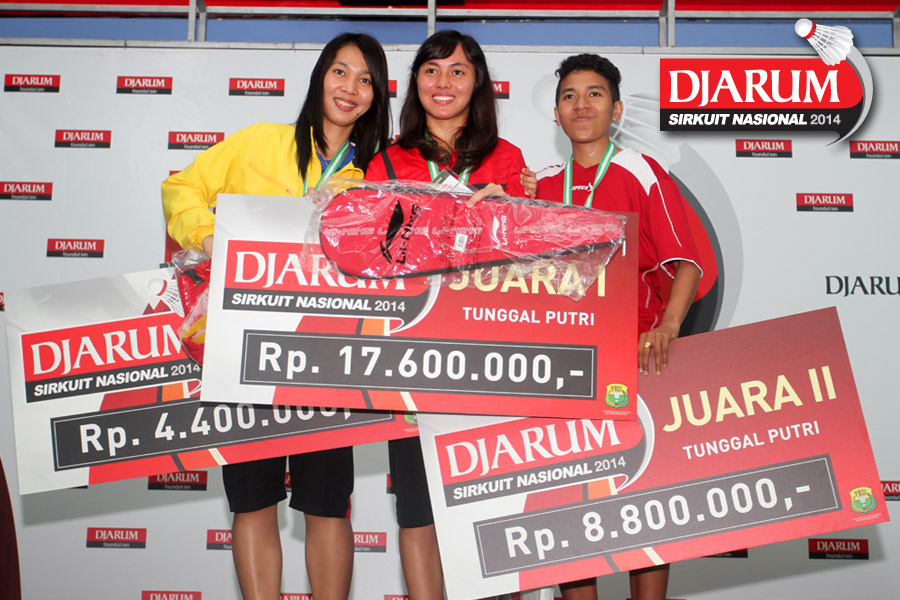 Empat atlet PB Djarum, Tutut Novi, Cynthia Shara, Ramadhani Hestiyanti dan Rofahadah Supriadi (dari kiri) saat di atas podium.
