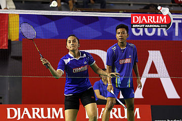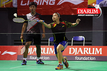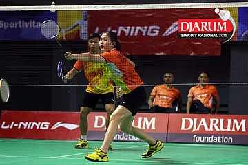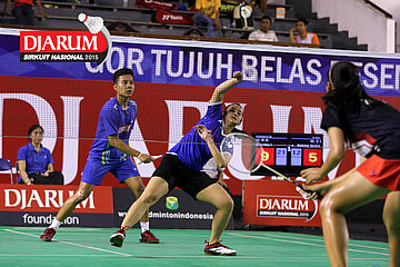 Michael Hendy/Vania Arianti (Djarum Kudus) menyambar pengembalian
