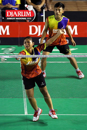 Aditya Muchis/Anis Mubarokah (Fifa BC) bersiap menyambar pengembalian