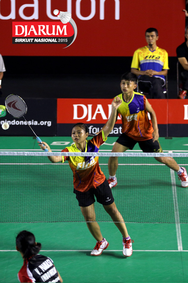 Aditya Muchis/Anis Mubarokah (Fifa BC) menyambar pengembalian tanggung