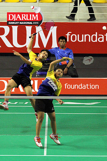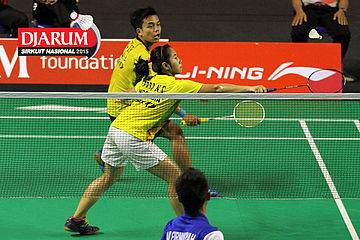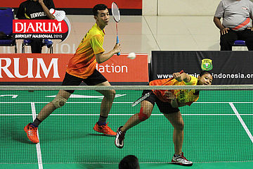 M. Taufiqul/Vanadia Pranasa (Djarum Kudus) mengembalikan shuttlecock.