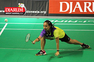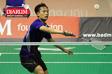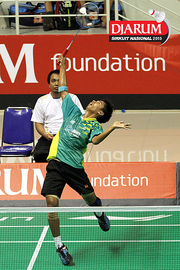 Fahmi Mubarok (Candra Wijaya) mengembalikan shuttlecock.