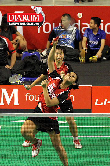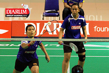 Ludwina/Rona (Djarum Kudus) mengembalikan shuttlecock.