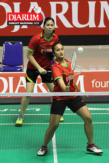 Dianita Saraswati/Yulfira Barkah (Mutiara Cardinal) menyambut serve.