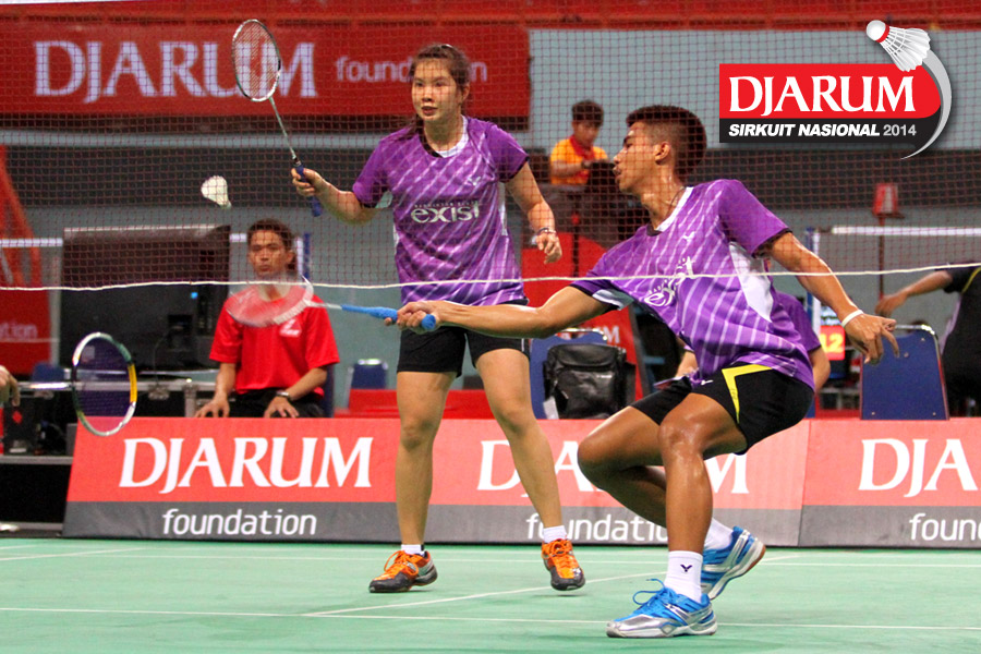 Sabar Karyaman/Fransisca Raharja (Exist) berhasil menghadang pengembalian dari Engga Nur/Vina Elsa (Jaya Raya).