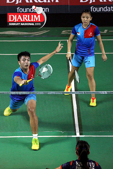 Kevin Ezra/Angelica Wiratama (Exist) menyambar pengembalian dari Billy Jonathan/Marrisa Vania (Candra Wijaya/Tangkas).