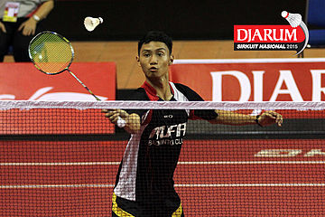 M. Fathlurahman (Aufa Kalsel) mengembalikan shuttlecock ke arah Arif Wahyu Setiawan (CWIBC)