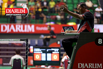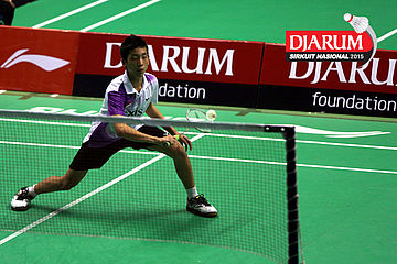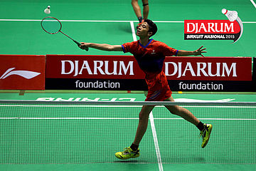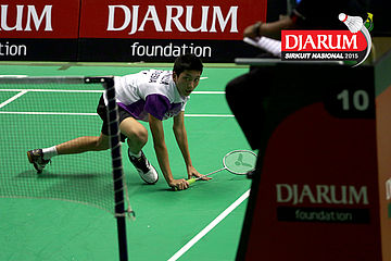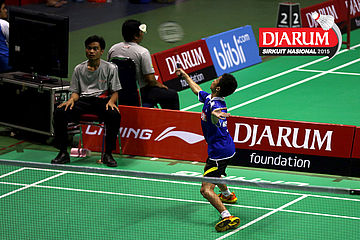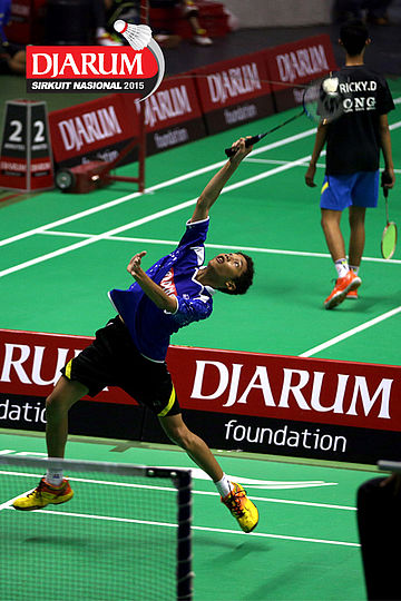 Dipa. S (Suluh SAE) bersiap menyambar shuttlecock.