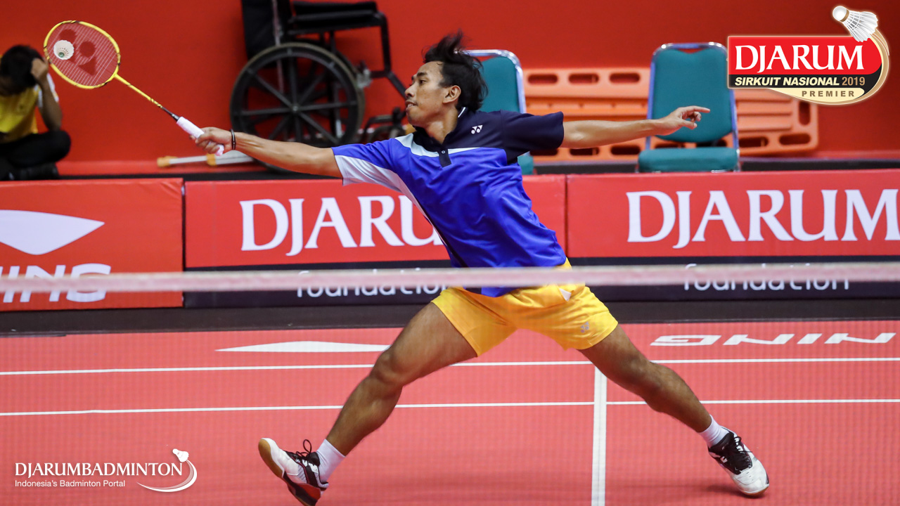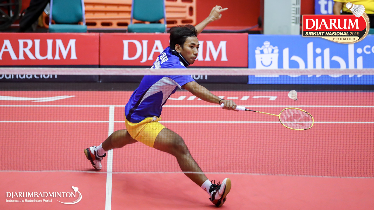 Yoega Sidiq Anggoro (ISTC Berkat Abadi, Sukabumi) menyambut shuttlecock