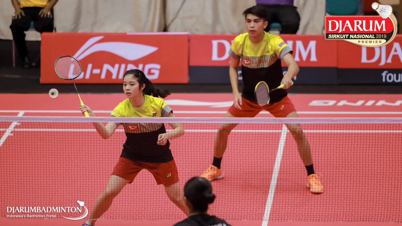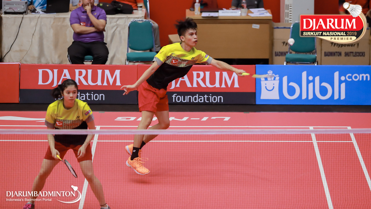Reinard Dhanriano+Rayhan Vania Salsabila (Mutiara Cardinal, Bandung) mengembalikan serangan