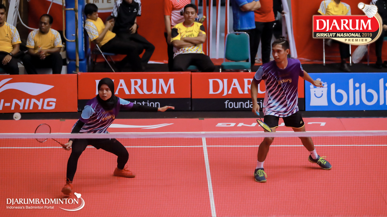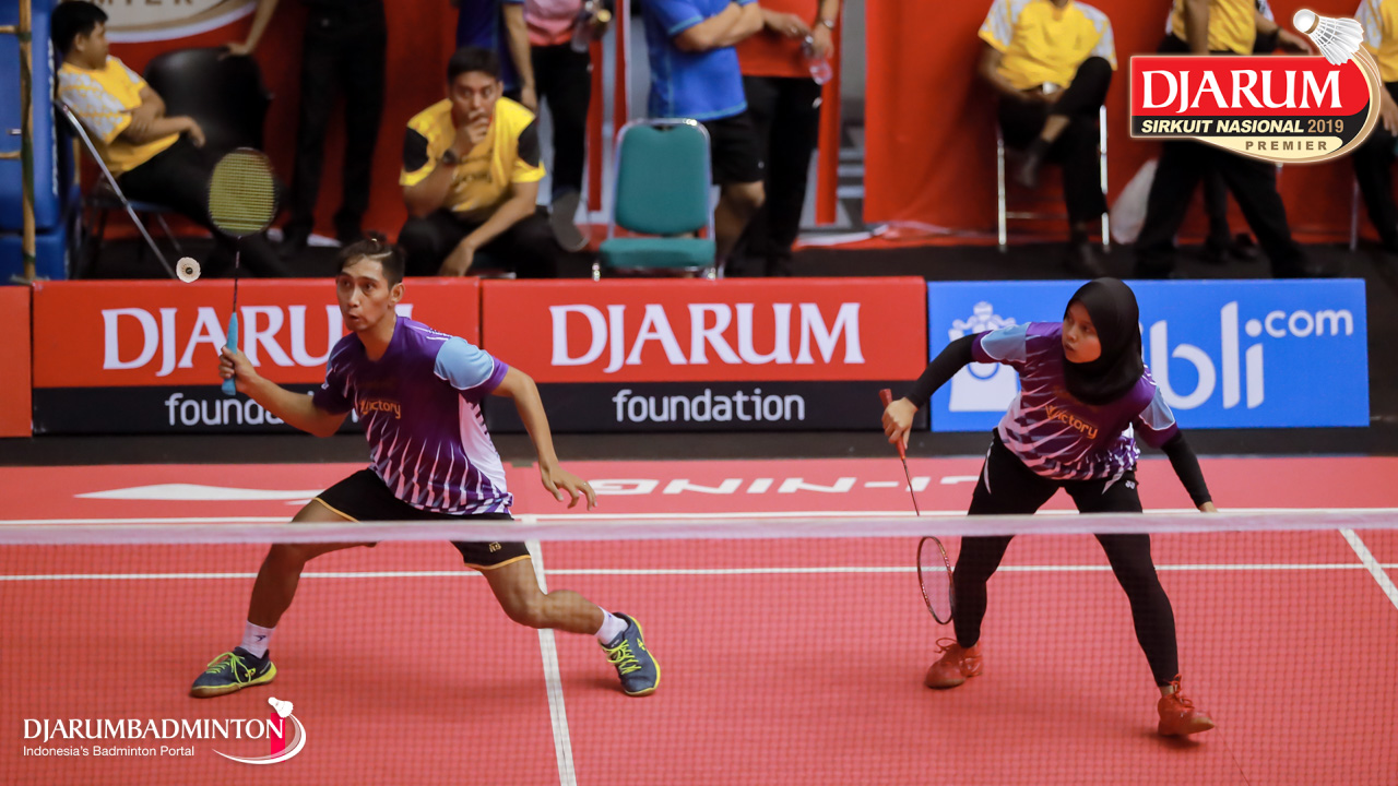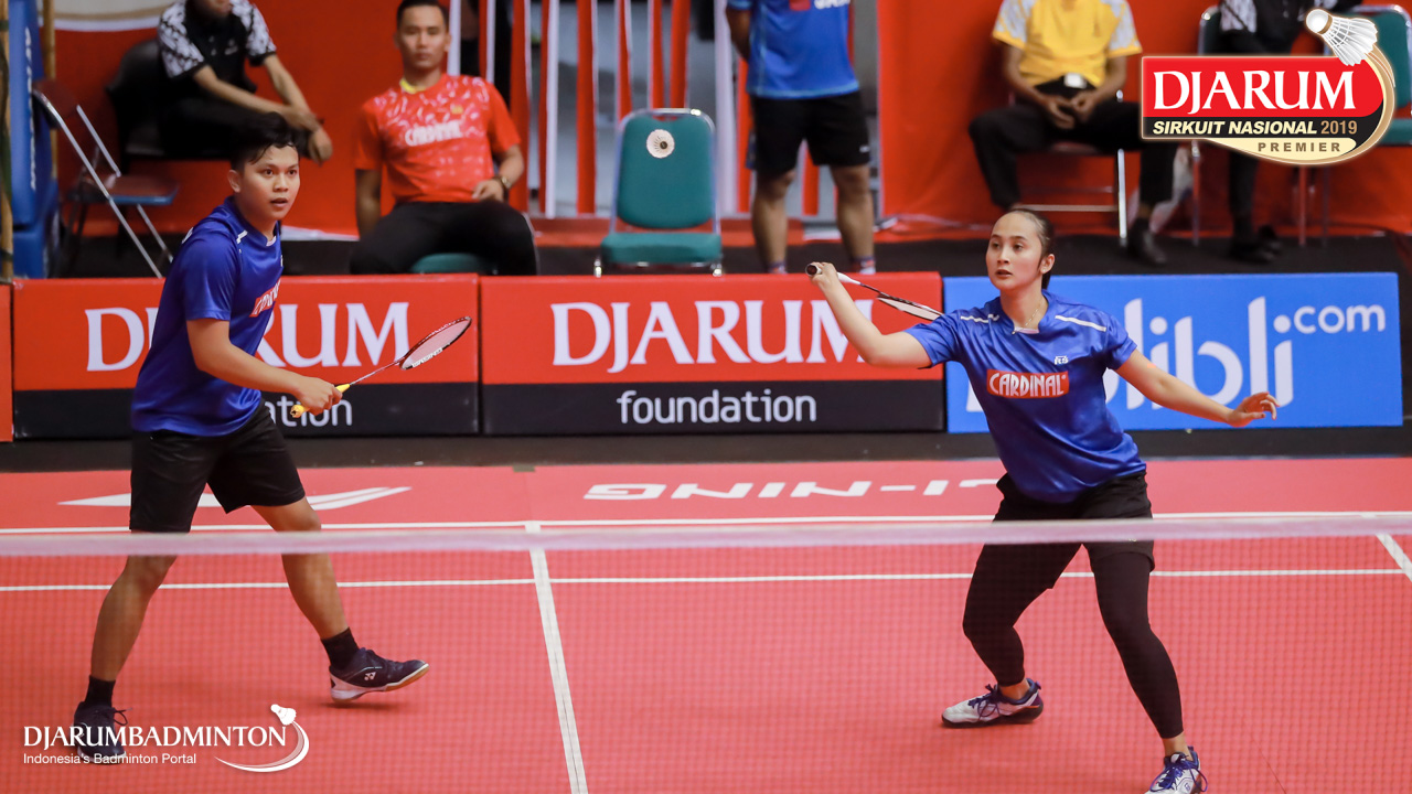 Ferdian Mahardika Ranialdy+Anggia Shitta Awanda (Jaya Raya Jakarta) mengembalikan shuttlecock