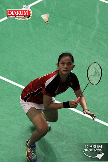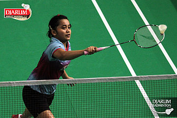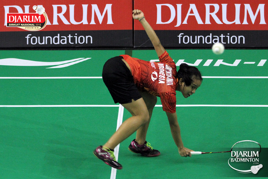 Ghaida Nurul (Djarum Kudus) bersiap melepaskan backhand