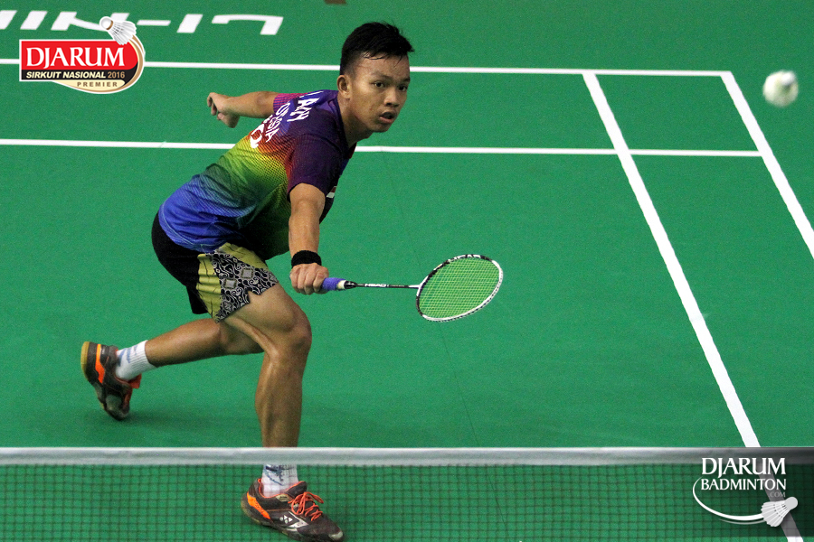 Adam Aldy (Kapuas Jaya) mengembalikan shuttlecock