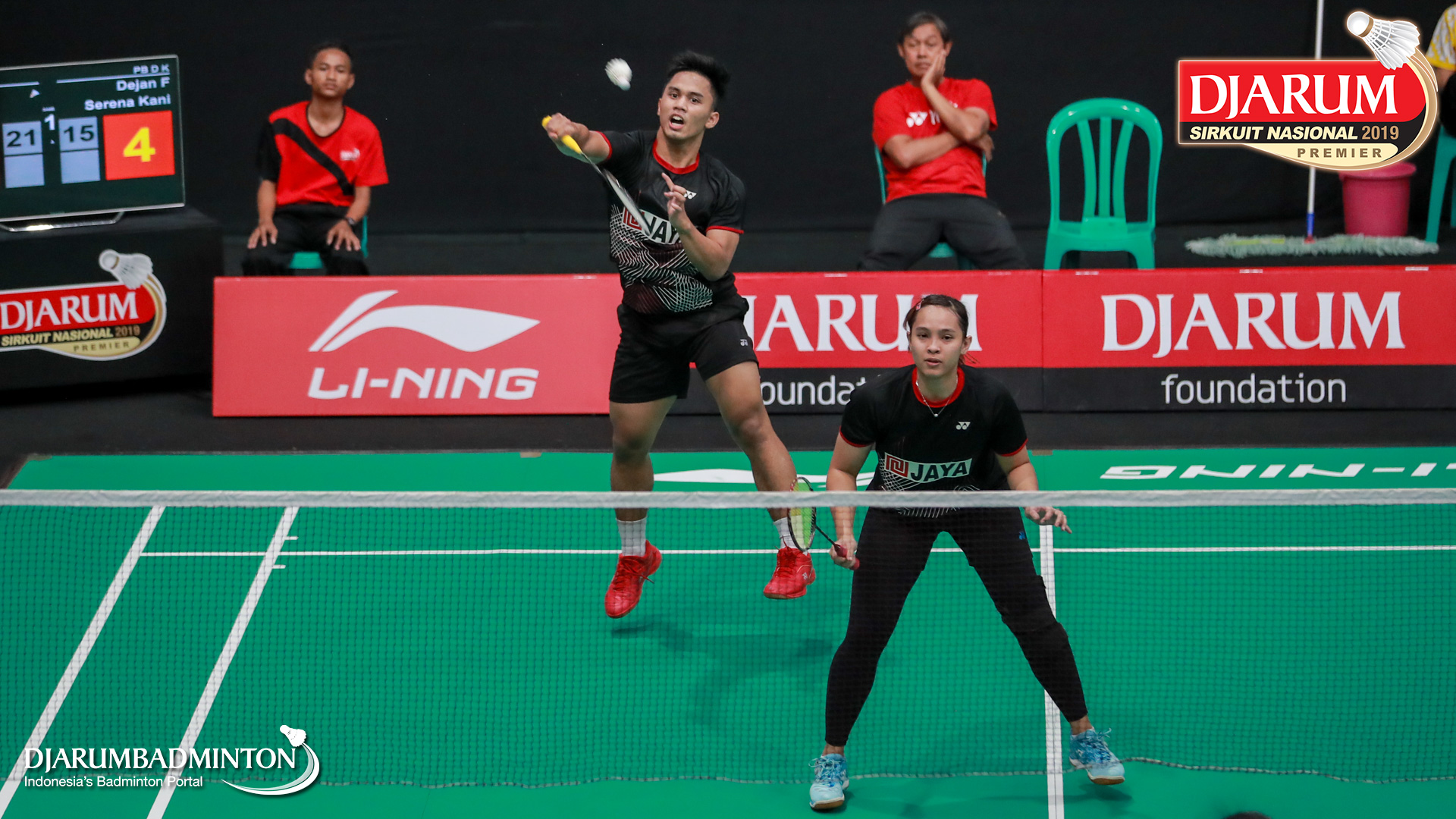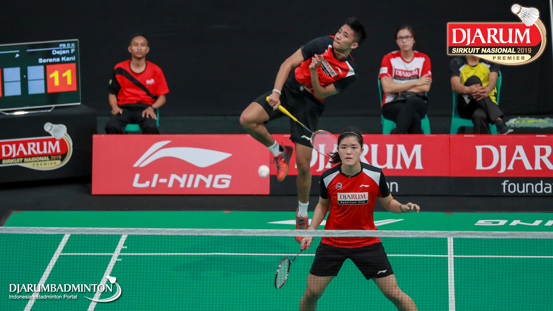 Dejan Ferdinansyah+Serena Kani (PB Djarum, Kudus) melepaskan serangan
