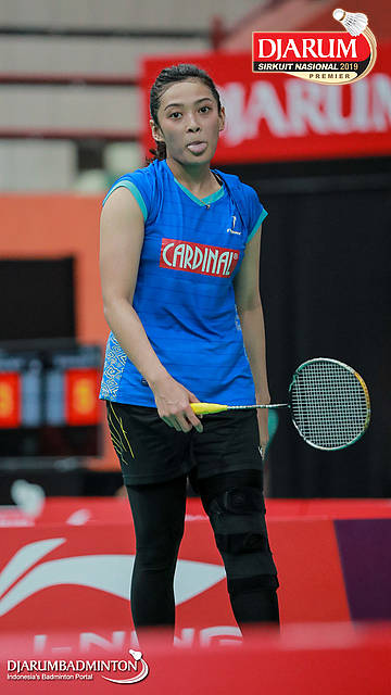 Amri Syahnawi+Masita Mahmudin (Jaya Raya Jakarta) mengembalikan shuttlecock