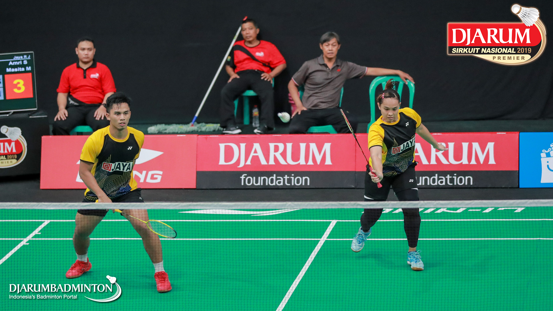 Amri Syahnawi+Masita Mahmudin (Jaya Raya Jakarta) mengembalikan serangan