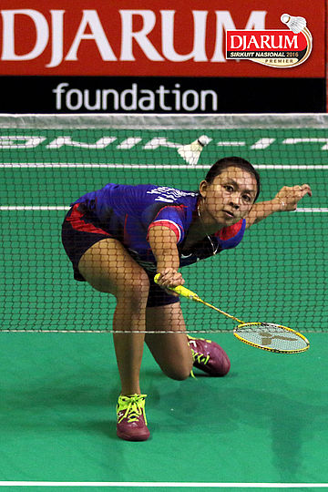 Putri Ayu (Pelatnas) Mengembalikan Shuttlecock.