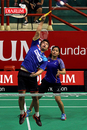 Indra Leonard/Violita Dewi (Bayu Kencana) Mengembalikan Shuttlecock.