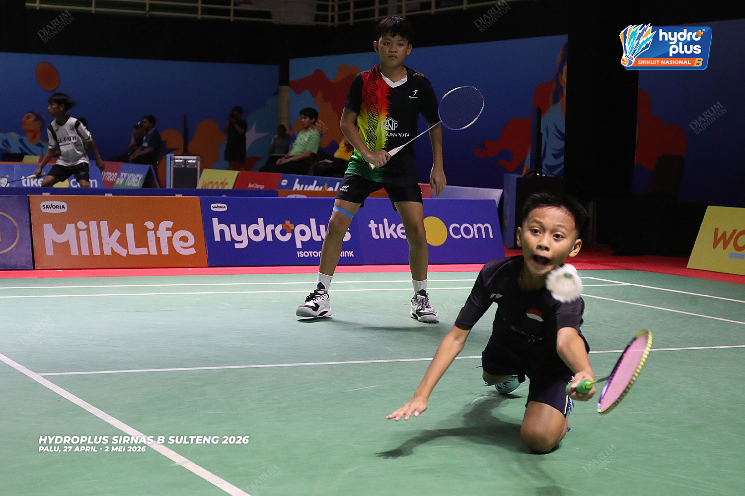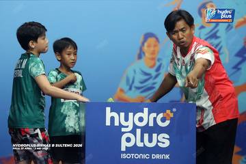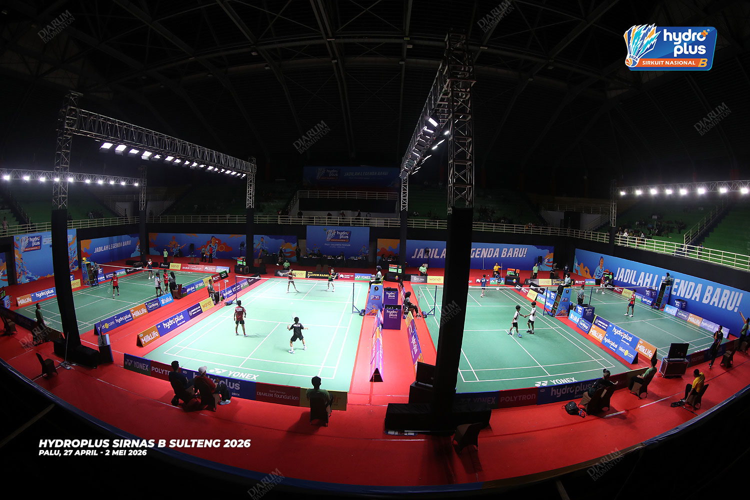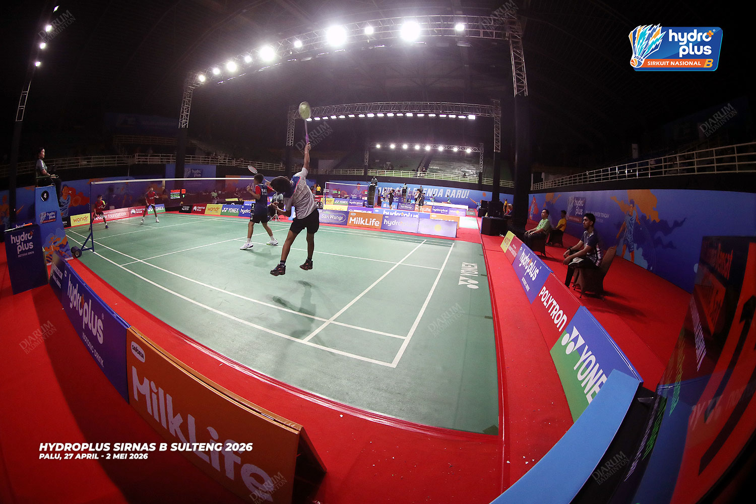 Suasana pertandingan pada hari pertama HYDROPLUS Sirkuit Nasional B Sulawesi Tengah di GOR Gelora Bumi Kaktus Andi Raga Pettalolo, Palu